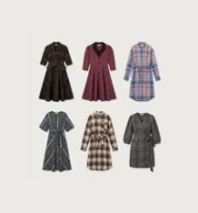 Vind elegante jurken in het verfijnde glen ruitpatroon.